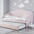 Основание: встроенное дно из ЛДСП. Спинка декорируется пуговицами. Задняя сторона спинки изготавливается из технической ткани или в цвет кровати. Нижний ярус можно использовать как ящик для хранения или второе спальное место. Дополнительно можно приобрести бортик безопасности. Рекомендуемая высота матраса 170 - 180 мм.