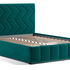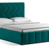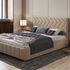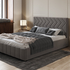 Данная модель изготавливается в стандартных цветах ткани. Объемная стежка на изголовье и изножье кровати. Материал опор: чёрный пластик. Каркас выполнен из фанера ДСП, ДВП, ЛДСП, МДФ, спанбонд, ППУ. Задняя стенка изголовья выполнена в тех. ткани (спанбонд). Кровать может комплектоваться 2-мя на выбор основаниями: металлокаркас или металлокаркас с подъемным механизмом и коробом для белья. Максимально допустимая нагрузка на одно спальное место: 120 кг. Рекомендованная высота матраса от 100 до 200 мм.