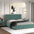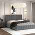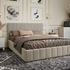Данная модель изготавливается в стандартных цветах ткани. Каркас выполнен из массива сосны, ППУ, берёзовой фанеры, ДВП, МДФ, ЛДСП. Кровать может комплектоваться 2-мя на выбор основаниями: металлокаркас на 5-ти опорах или металлокаркас с подъемным механизмом.