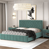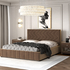 Данная модель изготавливается в стандартных цветах ткани. Каркас выполнен из массива сосны, ППУ, берёзовой фанеры, ДВП, МДФ, ЛДСП. Кровать может комплектоваться 2-мя на выбор основаниями: металлокаркас на 5-ти опорах или металлокаркас с подъемным механизмом.