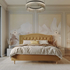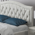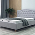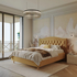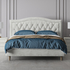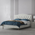 Интерьерная кровать в ткани "Каролина-2" на ножках, с каретной стяжкой и пуговицами.