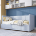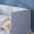 Кровать с двумя боковыми спинками обшитыми с двух сторон. Дно под подъёмным механизмом комплектуется по желанию - малый или большой ящик. Дополнительно можно приобрести бортик безопасности.