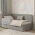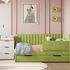 Детская кровать "Элла" с вертикальной строчкой и выдвижным ящиком сочетает в себе функциональность, стиль, удобство и комфорт, делая ее отличным выбором для детской комнаты.