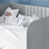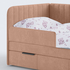 Кровать с двумя боковыми спинками обшитыми с двух сторон. В комплект входит ортопедическое основание. Дополнительно можно приобрести бортик безопасности. Нижний ярус можно использовать как ящик для хранения или второе спальное место.