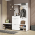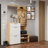 Прихожая состоит из 4-х конструкционных элементов: • Тумба с фасадами - Д.600 х В.1118 х Г.350 мм • Тумба открытая - Д.600 х В.470 х Г.350 мм • Навесной щит с зеркалом - Д.600 х В.982 х Г.20 мм • Навесной щит с крючками - Д.600 х В.1630 х Г.218 мм