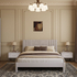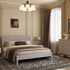 Кровать "Нортан" из массива в льняном цвете с мягкой вставкой серого цвета на спинке.